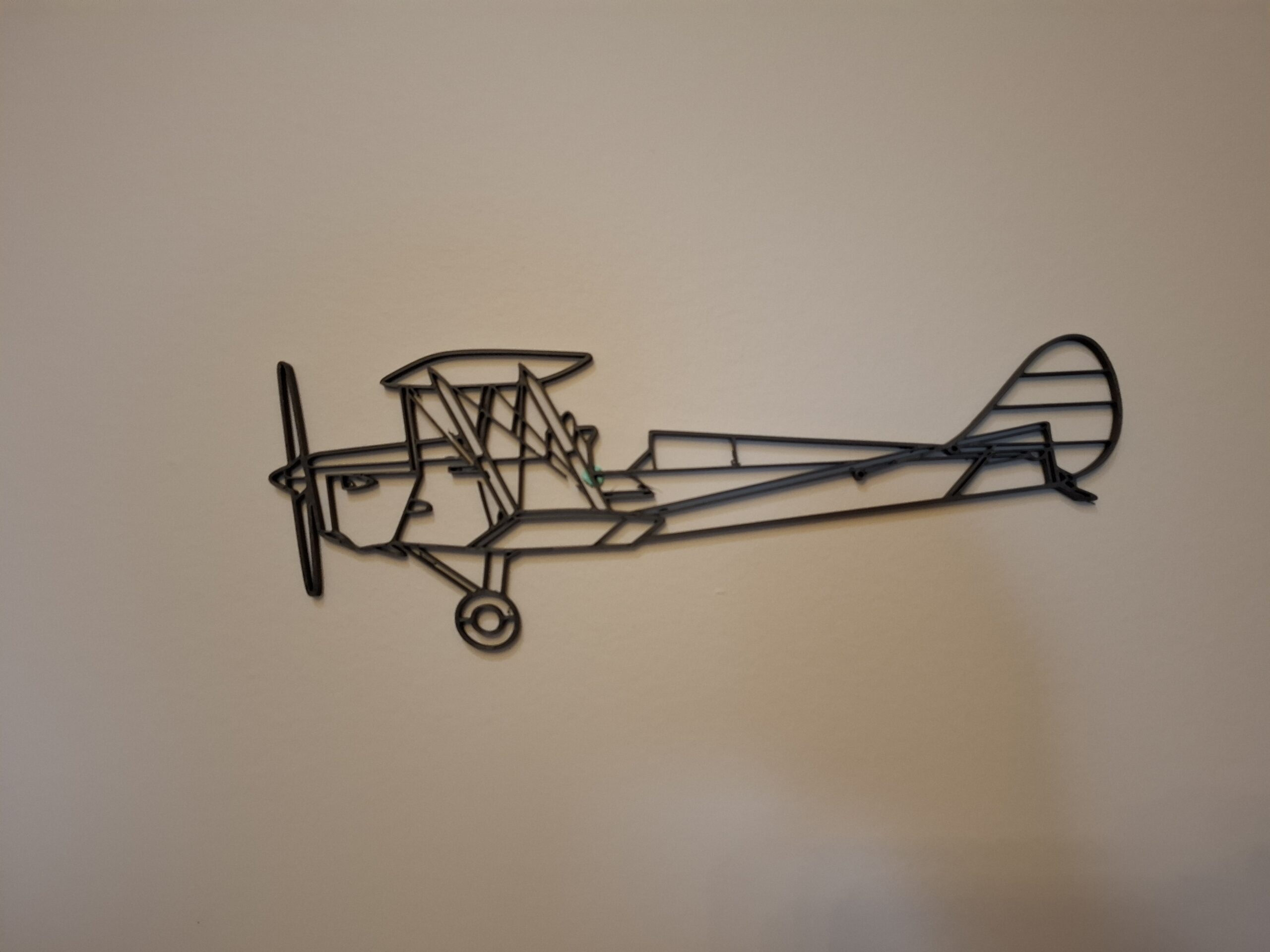 Bring a touch of aviation nostalgia to your home, workshop, office, or hangar with this beautifully crafted 3D-printed vintage biplane silhouette. Inspired by classic metal wall-art designs, this lightweight PLA version recreates the elegant line-art profile of an early-era aircraft in a stylish, minimalist form.