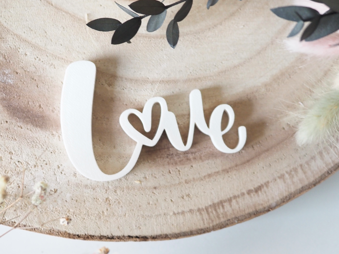 Celebrate love in a subtle, elegant way with this mini script “love” decor sign, designed with gentle curves and a sweet heart detail built into the lettering.